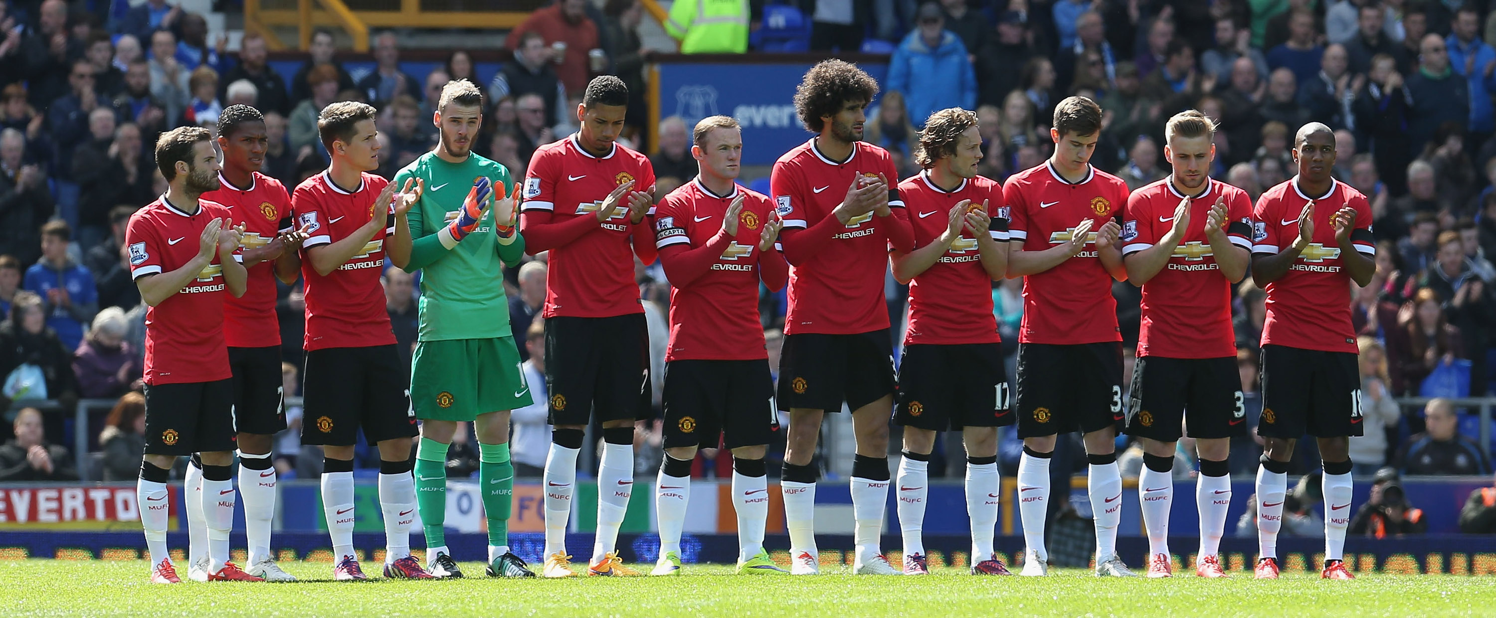 Foto: A equipa do Manchester United aplaude numa homenagem às vítimas do incêndio no estádio de Bradford num jogo para a Premier League contra o Everton no Goodison Park, em Liverpool, Inglaterra