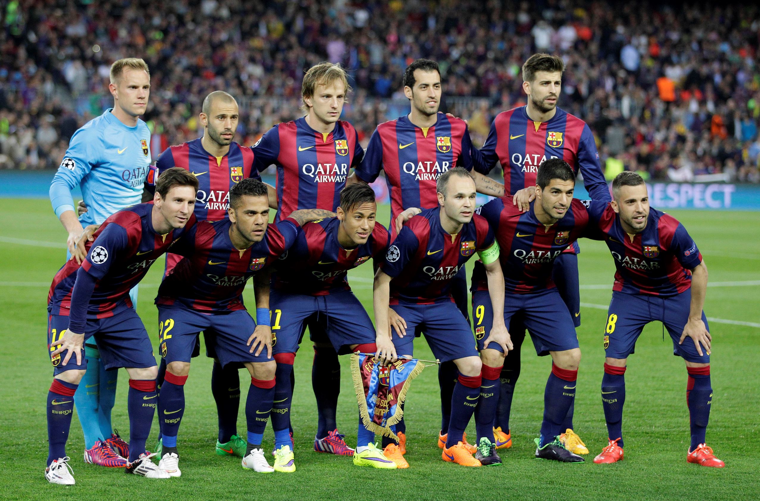Foto: A equipa do Barcelona posa para a foto de equipa antes dos quartos-de-final da Champions League contra o Paris Saint-Germain em Camp Nou, Barcelona, Espanha