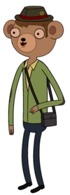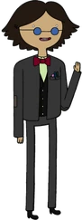 Como Simon ele tinha cabelo marrom com dois pedaços do lado.Com olhos brancos. Ele tinha um terno com uma jaqueta cinza e uma calça da mesma cor.