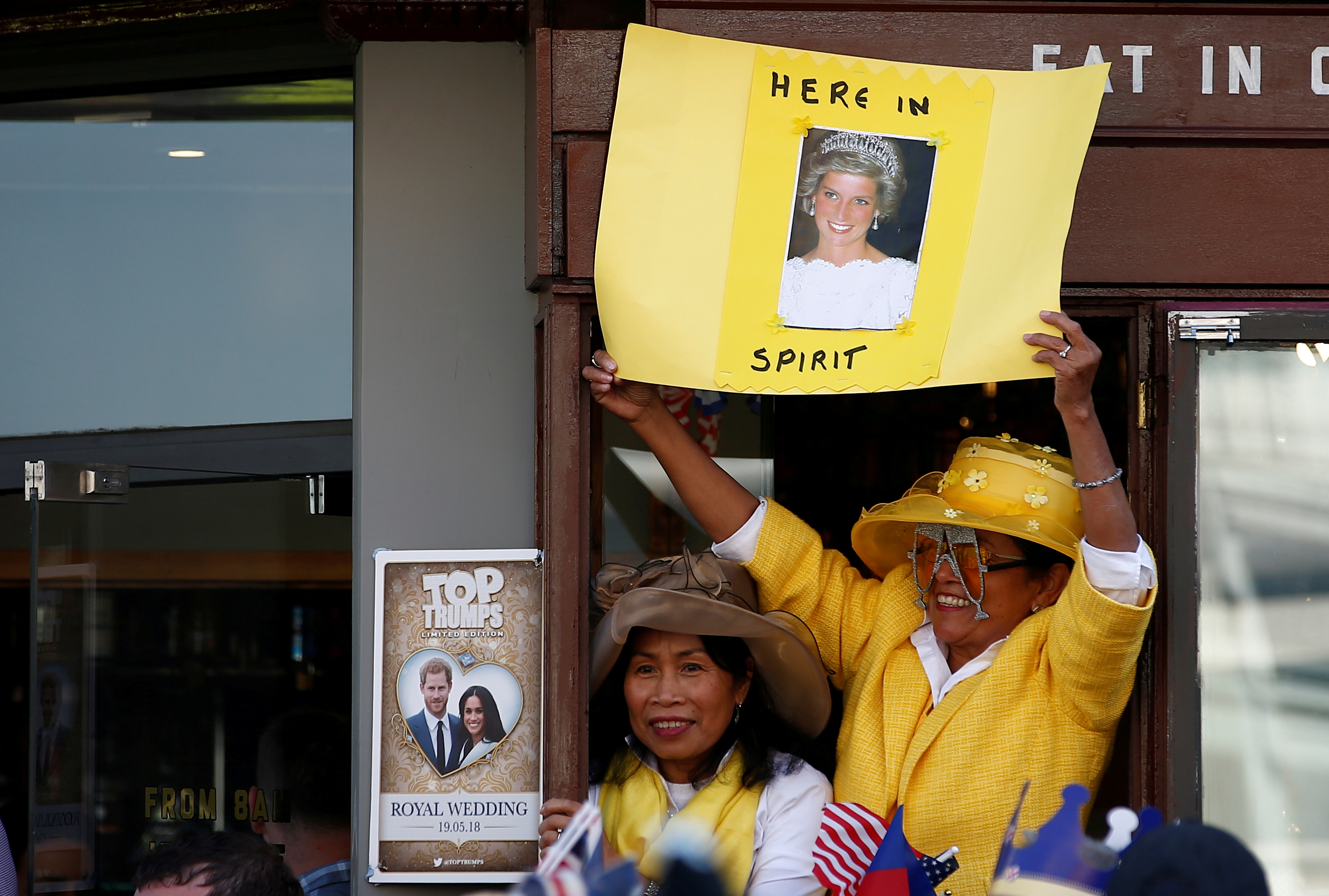 Centenas de pessoas esperam a chegada dos noivos: Príncipe Harry e Meghan Markle.
