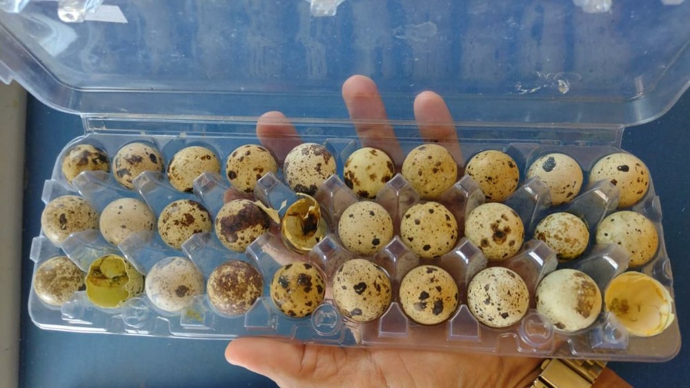 Resposta para Ovos de codorna chocam em uma prateleira... - 3 anos atrás