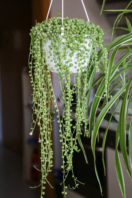 Como o próprio nome indica, as suculentas pendentes nomes colar de pérolas são tão delicadas quanto a pedra preciosa. Com os devidos cuidados, a planta pode chegar a 1m de comprimento. Suas flores florescem no inverno, são brancas e super delicadas.