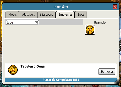 2º Passo: Para conseguir acessar o evento, você deverá está com o emblema "Tabuleiro Ouija" em seu perfil.