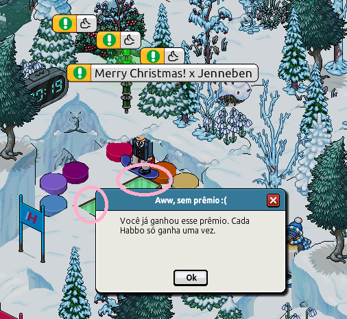 Após encontrar os 03 "Pinguim Sonolento", aparecerão 02 "Piso Colorido" na cor verde. Suba em um deles para ganhar as suas premiações!