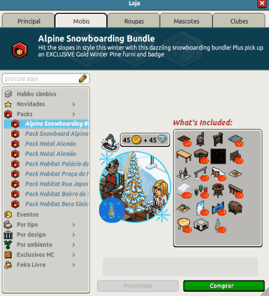 Faltando 10 dias para o Natal, e a equipe do Habbo lançou novamente um pack que já esteve disponível na loja do Habbo Hotel a alguns anos atrás. Este pack estará disponível na loja até quinta-feira que vem, dia 22/12/2022 às 09h BR / 12h PT!
