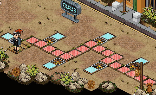 Caso você pise em um dos "Piso Colorido" na cor vermelha, você voltará para a fila.