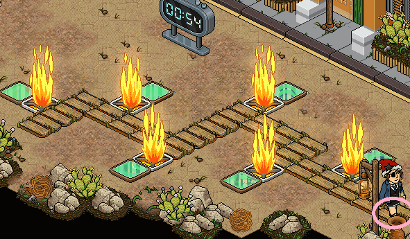 4º Passo: Seu objetivo será pisar nos "Piso Colorido" e deverá sair dele antes que a "Muralha de fogo" acenda. Você deverá fazer isso em todos os pisos na arena, e logo após você deverá subir no "Ponte de Madeira" que se encontra do outro lado da arena para ganhar.