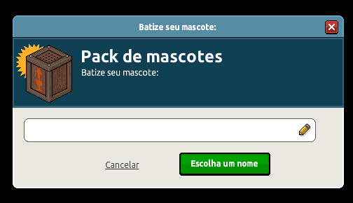 3º Passo: Ao clicar em "Usar", escolha um nome para o seu mascote. Após isso, a caixa irá sumir e seu Leprechaun irá aparecer no seu quarto.