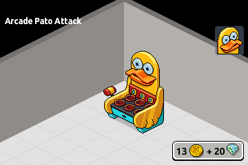 A última máquina foi lançada, seu valor ficou definido como 13 câmbios + 20 diamantes. Ao adquirir a máquina você ganha um emblema representativo da Máquina Arcade Pato Attack. Para aqueles que adquiriram todas as máquinas anteriores, ao comprar esta máquina, aparece junto um emblema extra que na qual representa a máquina bônus que será entregue em breve pela equipe Staff, então basta aguardar.