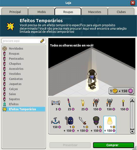 O usuário para conseguir usar o mobi transformável, deverá estar usando o efeito "Todos olhares estão em você".