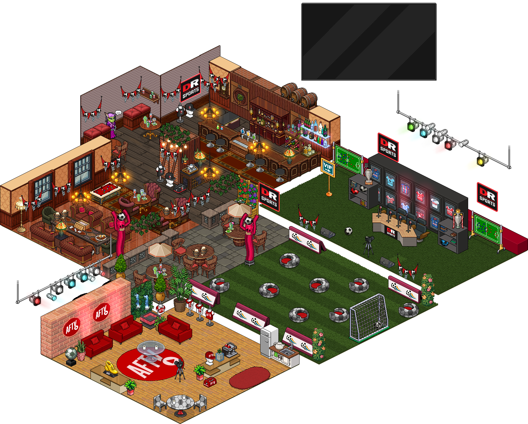 O Habbo Hotel Luso Brasileiro disponibilizou mais um quarto público. O quarto com video promocional da colaboração com o Canal DR Sports, também faz referência a sua mais nova coleção AFTV. Confira o quarto: