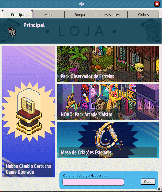 O Habbo disponibilizou novamente o Pack Observador de Estrelas que acompanha um emblema e um mobi exclusivo. Disponível até o dia 14/11 ele está sendo vendido na Habboshop pelo preço de 99 moedas ou 45 moedas e 45 diamantes. Confira!