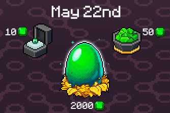No dia 22/05, vamos lançar uma coleção especial de mobis Esmeralda. Ela inclui a Pedra Esmeralda, o Punhado de Esmeraldas e o Ovo Dinossauro Esmeralda.