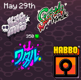 Yo! Cuidado por onde grafita! Habbos! Adoramos dar asas à criatividade. Esse mês, vamos nos dedicar a uma das maiores formas de arte urbana: o Grafite! Não se preocupem com os edifícios. Afinal de contas, são apenas tijolos. Mas isso não é tudo! Ainda há mais.