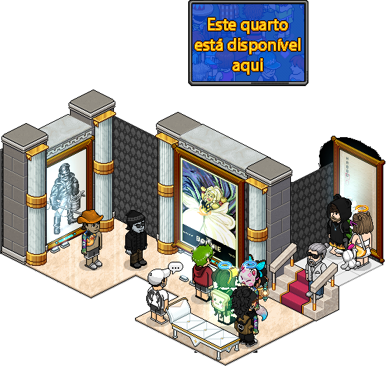 Nesta segunda-feira (13/05), chegou ao Habbo o novo Pack Galeria Habbiana - Sala dos Pilares. Você pode adquiri-lo por meio da loja do hotel pelo preço de 200 câmbios + 200 diamantes. Contém um emblema exclusivo e obras que não estão mais disponíveis no catálogo. Leia outras informações: