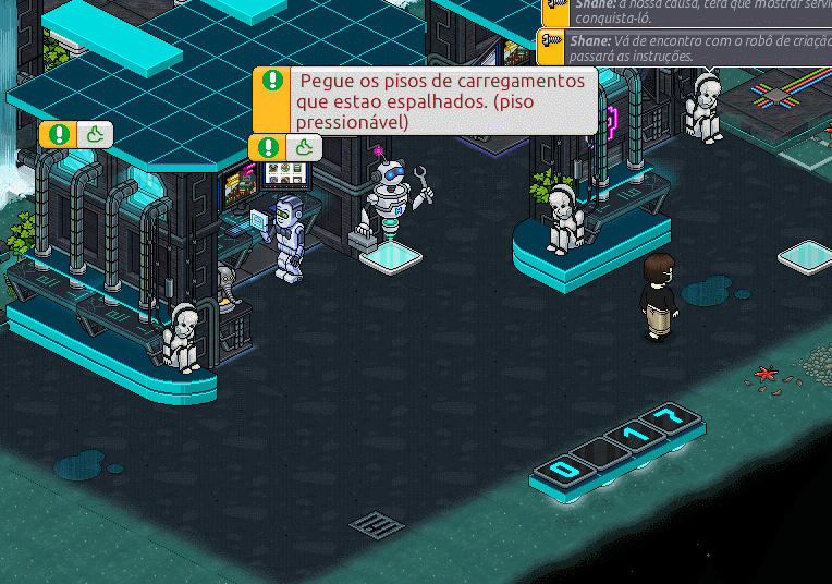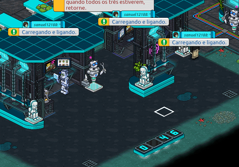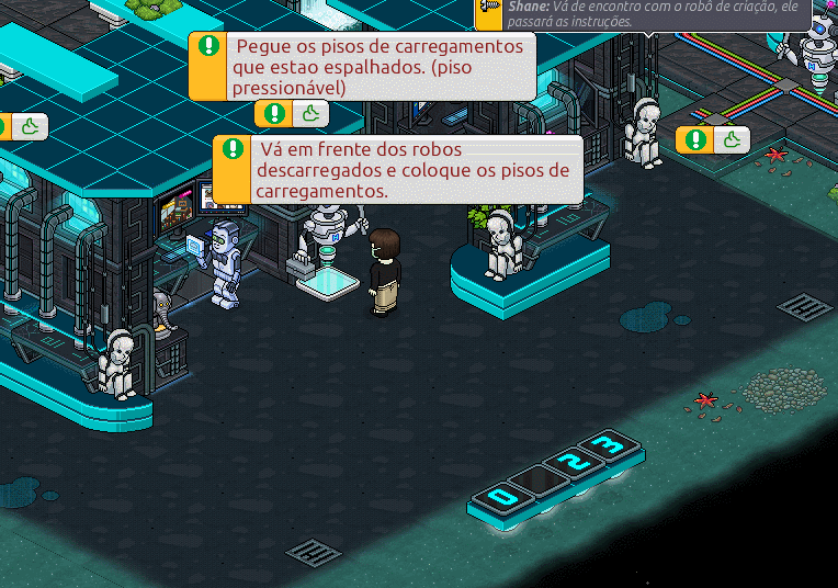 8° Passo: Após você recarregar os robôs que estão descarregados você deve ir até ao Robô de Criação novamente e logo depois você deve ir até o Robô Mordomo para ganhar seu emblema.