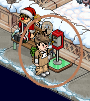4) Primeiramente, sente no banco que está na frente da ''Caneca Natalina'' e clique nela 2x.