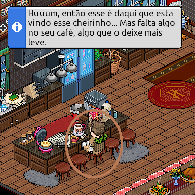 5) Após sente-se no banco que está na frente do mobi ''bebidas frescas'' e clique nele 2x.