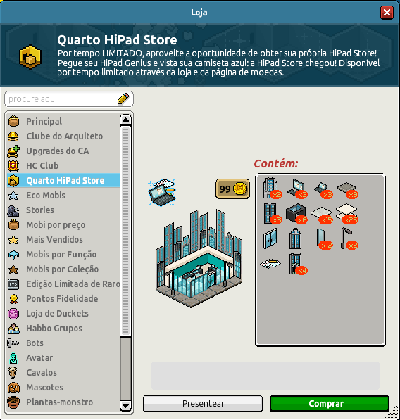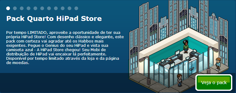 Com estas informações que foram dadas acima, hoje (04//06), o Habbo Hotel nos disponibilizou um novo pack, no qual o mesmo tem o tema "iPad". Comprando este pack, você ganha um emblema exclusivo. Este pack está sendo vendido por 99 câmbios no catálogo e R$9,99 na página de moedas.