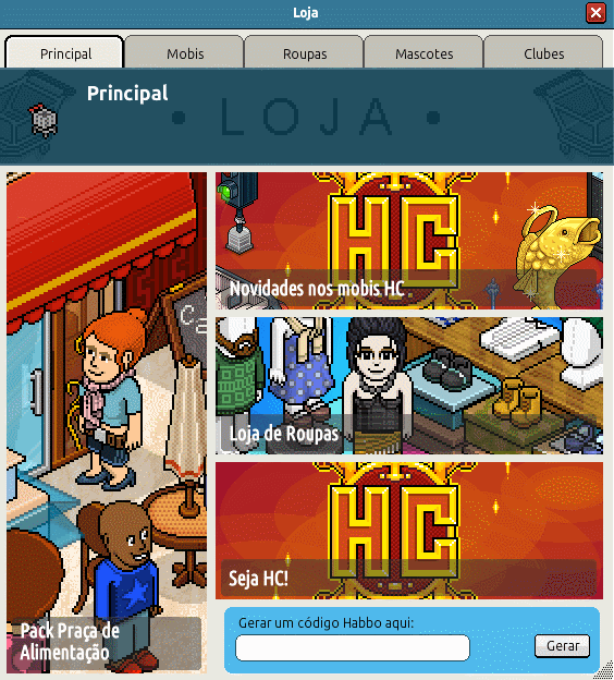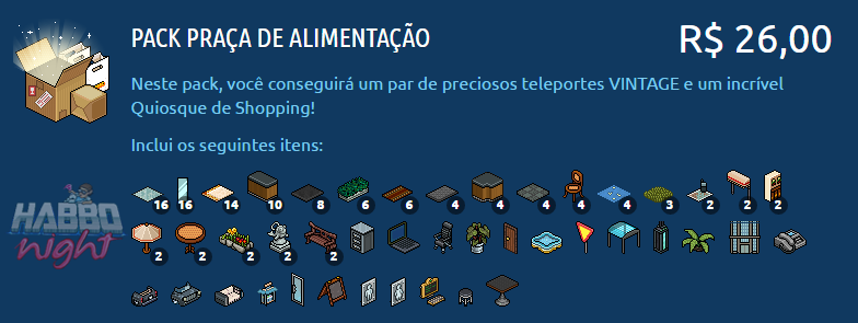 Nesta quarta-feira, 01/03, foi hospedado pela Sulake Corporation mais um pacote de mobílias no Habbo Hotel, o Pack Praça de Alimentação que está disponível no Habbo Shop e na Loja dentro do jogo.