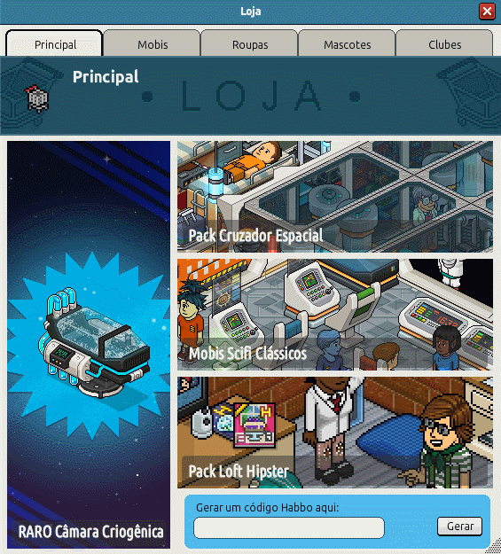A nova campanha espaço sideral do habbo se iniciou hoje (08/05), e junto a ela já veio as grande novidades como packs, roupas, acessórios e agora os raros. O novo pack super criativo com um designer único.