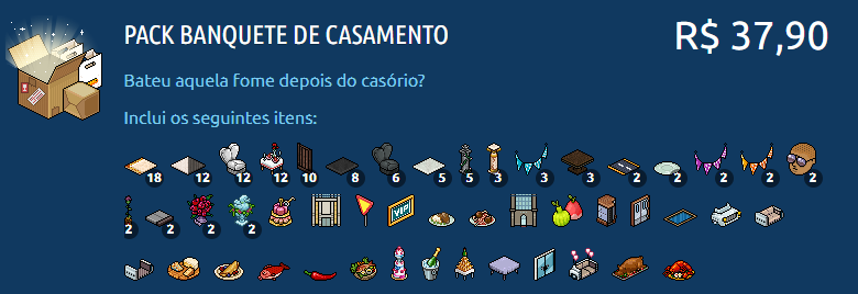 Os Packs de São Valentim estão fazendo sucesso pelo Hotel. Hoje (22/02), mais uma Pack foi lançado no hotel, desta vez o banquete de cansamento está de volta. Chama seus convidados para saborear essas comidas deliciosas. Confira o Pack:
