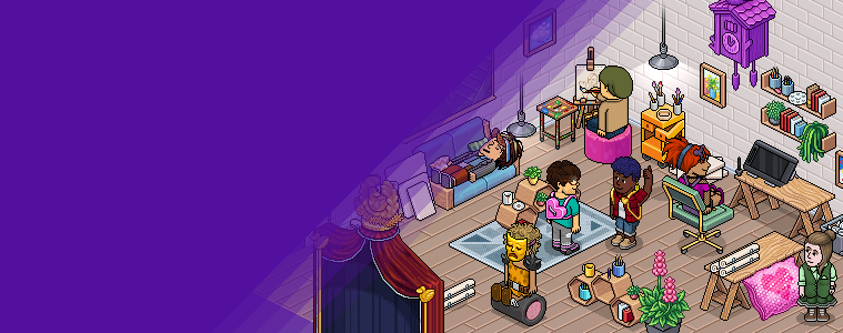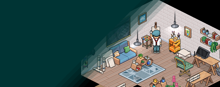 • Visite o Pack Galeria Habbiana - Sala Negra e deslumbre-se com uma mostra de famosos clássicos modernos do Habbo Hotel!