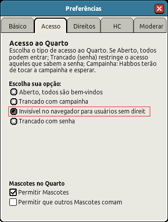 A nova ferramenta que estava em testes, já está disponível para os usuários. Muitos vão gostar, principalmente os criadores de promoção, pois ela deixa seu quarto visível apenas para o dono e seus diretores, ou seja, aqueles que nele tenham direitos.