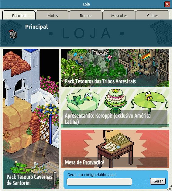 Nesta segunda-feira (18/07), chega ao catálogo do Habbo Hotel o Pack Tesouros do Egito que vai estar disponível por um tempo limitado. O pack completo pode ser adquirido por 99 câmbios ou 45 câmbios + 45 diamantes e vem acompanhado de 1 emblema exclusivo. Você pode adquirir o pack completo pelo HabboShop por apenas R$18.90, corre que dá tempo de garantir o seu novo quarto!