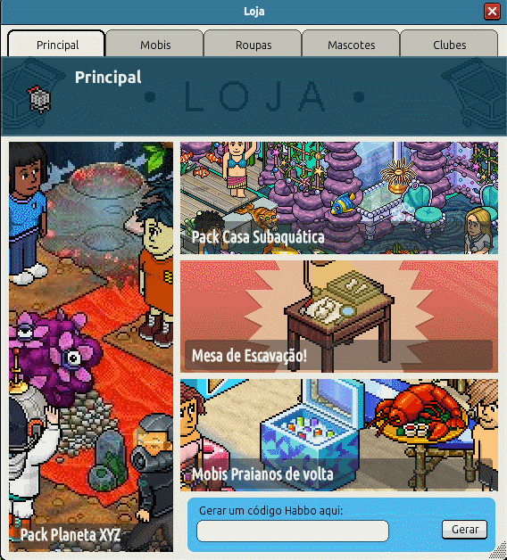Nesta Quarta-feira (27/07), chega ao catálogo novamente do Habbo Hotel o Pack Planeta XYZ que vai estar disponível por um tempo limitado. O pack completo pode ser adquirido por 99 câmbios ou 45 câmbios + 45 diamantes e vem acompanhado de um emblema exclusivo. Corre que dá tempo de garantir o seu novo quarto!