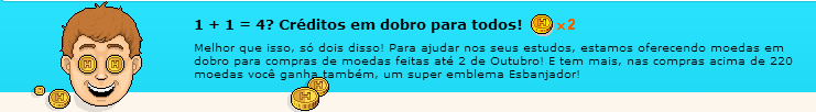 landing.view.2x1offer.header=1 + 1 = 4? Créditos em dobro para todos!!