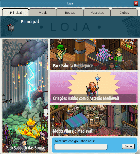 Se você procura um lugar para fazer feitiços e se divertir com seus amigos, este e o pack perfeito para você. Nesta segunda-feira (15/08) foi disponibilizado no hotel novamente o Pack Sabbath das Bruxas! composto por mobílias ao estilo de rituais e praticar os antigos rituais de bruxaria. Inclui 2 bots. O conjunto pode ser adquirido por 45 câmbios + 45 diamantes /99 câmbios ou pelo HabboShop. Confira abaixo mais informações: