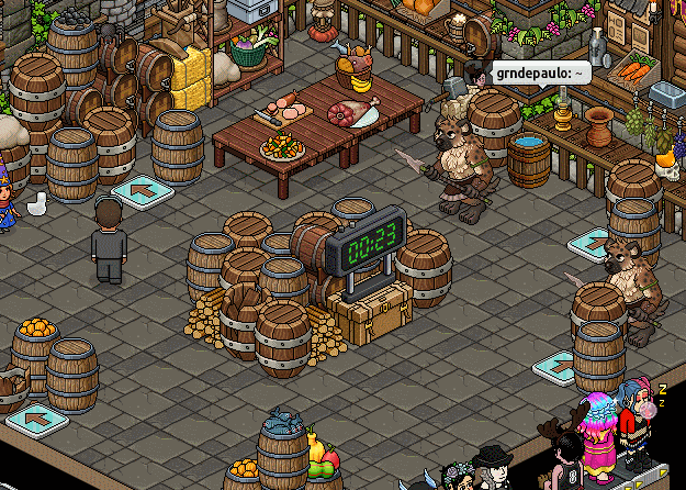 3° Passo: O objetivo é subir no "Piso de seta" e aguardar que o Barril Medieval se quebre para ver se ele tem a Poção de Força. Ao achar a posão automaticamente você receberá os seguintes prêmios: