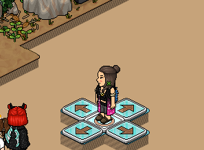 3° Passo: Ao chegar sua vez, Guie o bot com os pisos de cetas até a sombra na frente da porta. Quando ele estiver parado na porta, diga * para que ele seja teleportado ao outro lado.