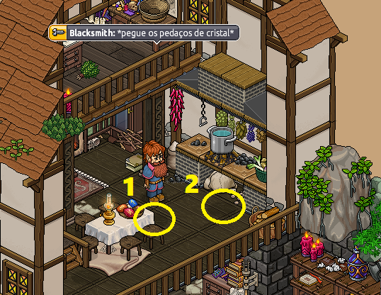 7° Passo: Guie o bot até as outras duas sombras, fale * assim que o bot estiver em cada uma delas. Ao coletar todos os itens fale * novamente para o bot ser teleportado para mesa.
