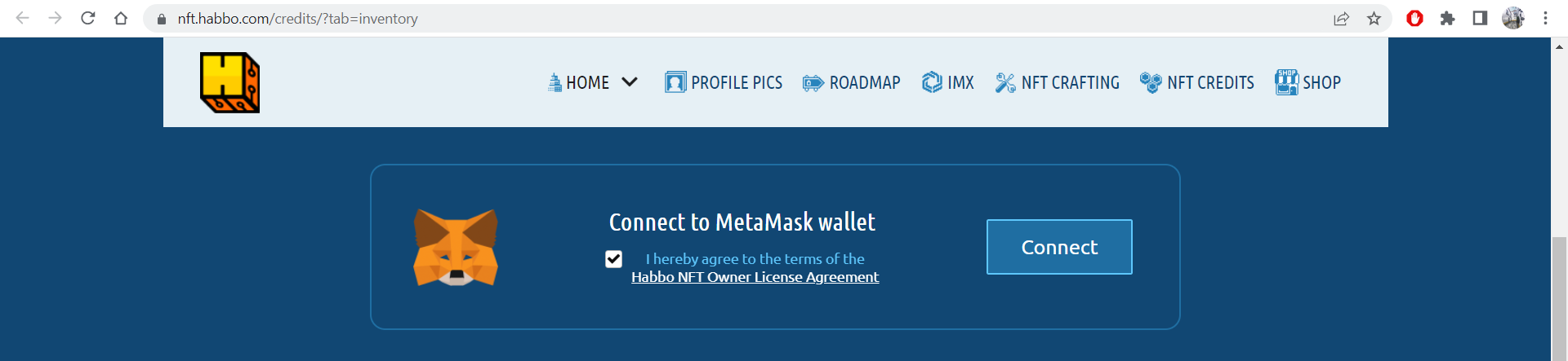 1. Se você recebeu alguma caixa, já a pode abrir. Todo o processo é bem simples. Primeiro você deve acessar a página "NFT Credits" e conectar a sua carteira MetaMask que tem a caixa!