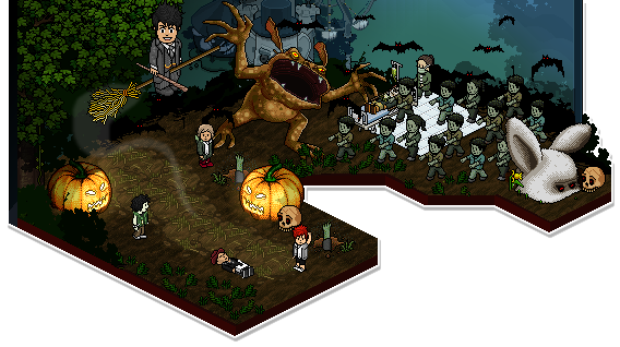 Milhares de demônios estão procurando por Habbos de bom espírito para levá-los ao submundo. A melhor maneira de escapar dessas almas penadas é camuflar-se entre elas criando um visual diabólico.