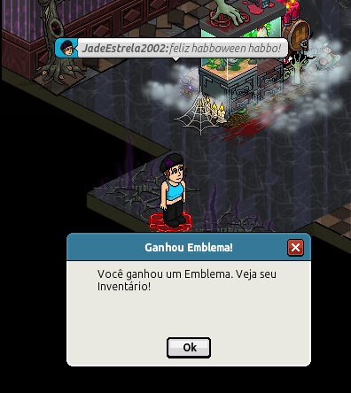 2º Passo: Digite "feliz habboween habbo!" para ganhar o emblema.