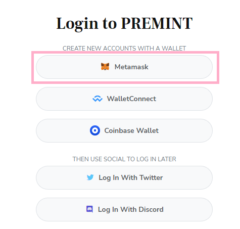 1º Passo: Você deverá logar no site PREMINT clicando aqui usando a sua carteira MetaMask.
