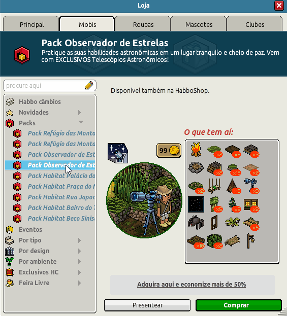 Você que gosta de olhar pro céu e admirar as estrelas em um lugar espaço e pouco iluminado, esse pack é perfeito para você! Ele contém um telescópio que leva além das estrelas, onde você poderá observar bem mais de perto, e sentir-se perto delas!