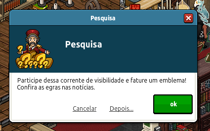 Todas as participações serão revisadas e aquelas que estiverem dentro do aqui solicitado, respeitando as regras descritas acima e a Habbo Etiqueta, receberão um emblema exclusivo comemorativo da data. Participações postadas após à meia-noite no Brasil não serão aceitas.