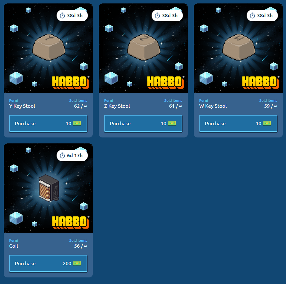 Como todos sabem, quase toda semana, o projeto Habbo NFT está lançando várias coisas incríveis para os usuários do Habbo em todos os países! Foram disponilizados 4 novas mobílias na Loja do Habbo NFT! Você já poderá garanti-los! Os mobis disponíveis foram uma Bobina e 3 teclas de letra.