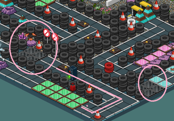 Caso encoste nos "Gêiser Submarino" e "Pneus", você será kickado do quarto.