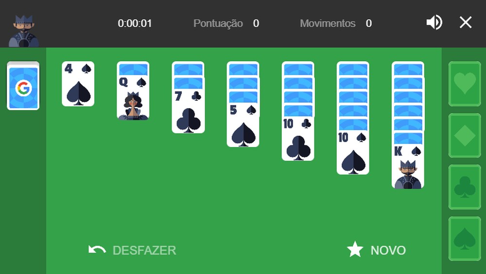 O Google criou uma versão do jogo de cartas Paciência que pode ser acessada diretamente pelo navegador, acredita?