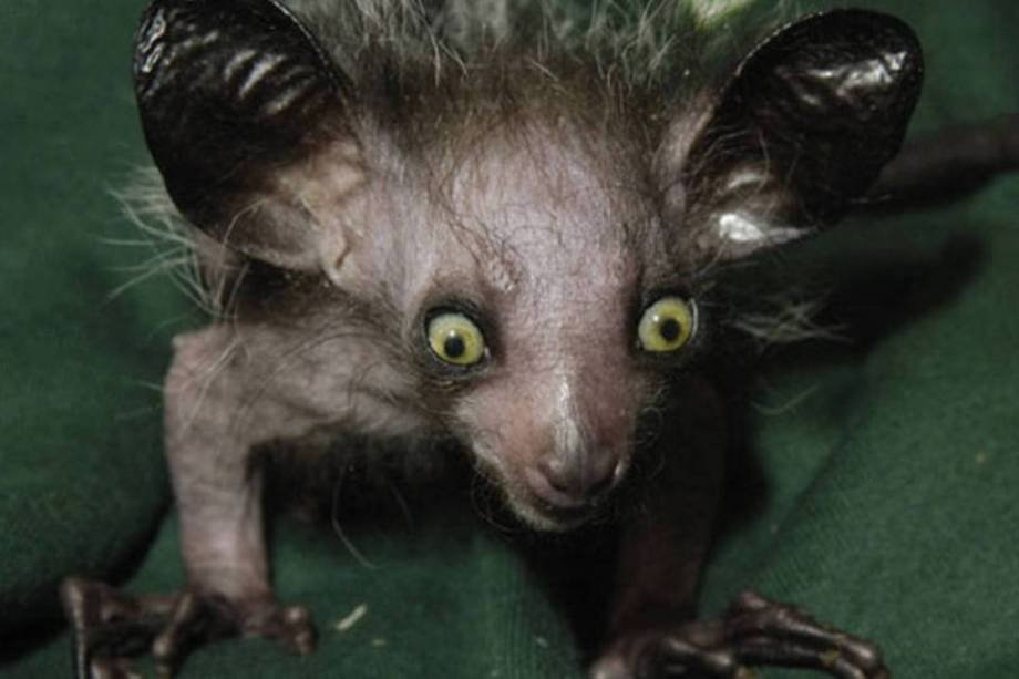 Este lêmure de pelos negros e olhos esbugalhados vive em árvores da floresta de Madagascar e tem hábitos noturnos. Além da visão otimizada, o aye-aye possui um dedo maior que os demais, que é usado para caçar larvas nos buracos das árvores.