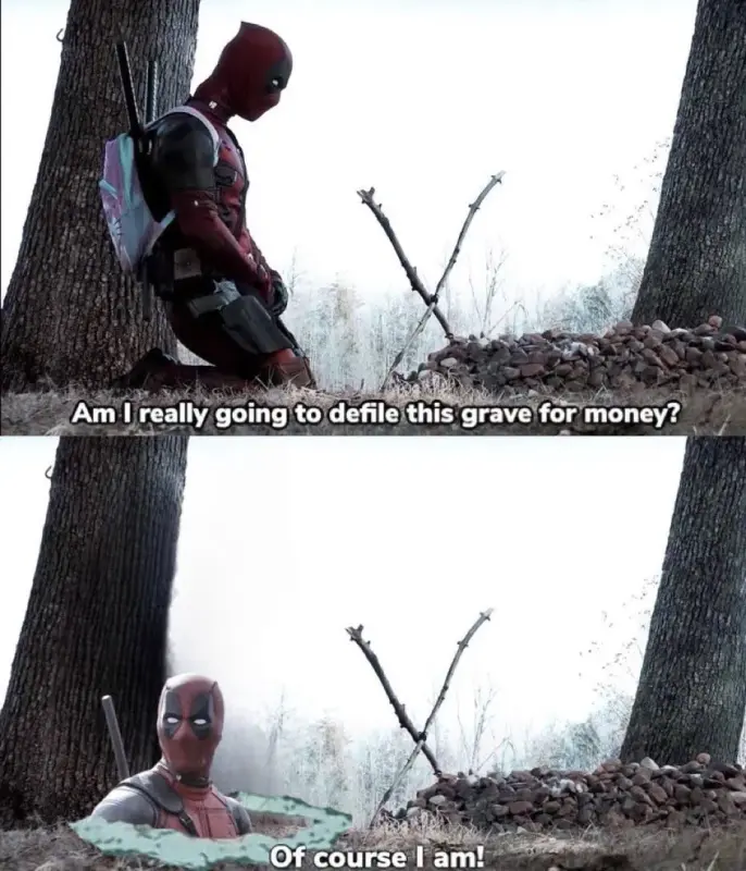 Mas um usuário no Twitter, SpiderKen, imaginou um possível início para Deadpool 3, que traria o mercenário se deparando com a cova do Logan e o desenterrando após se questionar: “Eu realmente vou desonrar esta cova por dinheiro? É claro que eu vou!“.