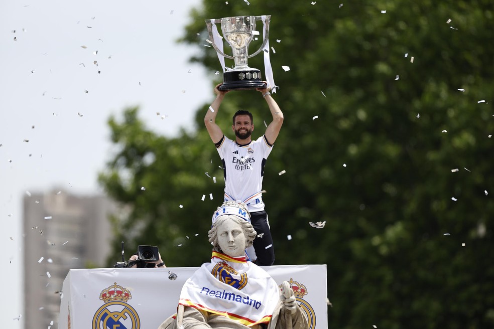 Depois, os atletas trocaram o terno e gravata por camisas especiais para celebrar a 36ª conquista nacional do Real Madrid. O elenco subiu em um carro aberto para ir até a Praça de Cibeles, ponto tradicional de comemoração dos títulos do time, onde milhares de torcedores já aguardavam para a festa.