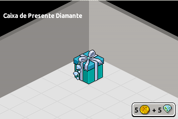 Hoje (14/03) foi disponibilizada a Caixa de Presentes de Diamantes, seu valor é de 5 câmbios + 5 diamantes. Ao adquirir a caixa voc~e pode tentar a sorte em ganhar 3 itens de vestir de diamante, vestimentas ou mobílias. Além disso, você também pod eestar vendendo a caixa pela feira livre.
