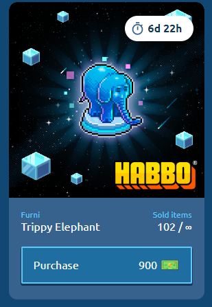 O Item não está sendo vendido no catálogo do Habbo Hotel e sim na Loja NFT. Você pode comprar o Elefante Trippy CLICANDO AQUI para acessar a loja.