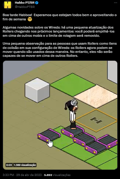 O Habbo Hotel BR/PT, postou em suas redes sociais uma novidade envolvendo os rollers. Agora será possível empilha-los em cima de outros mobis. Anteriormente o usuário deveria retirar os pisos para conseguir colocar um roller no quarto, agora poderá colocar em cima do piso ou de qualquer outro mobi.